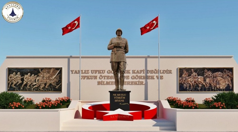 Atatürk Heykeli Tasarım Bilgisi: Mustafa Kemal Atatürk, Çonk Bayırı Anafartalar Grup Karargahındaki Çanakkale Savaşında kullanılan askeri üniformalı, çizmeli, başında şapkası, boynunda dürbünü, sağ eli dürbünü tutar vaziyette, sol eli arkada belinin üstünde kamçısını tutar vaziyette tasvir edilmiştir.Mustafa Kemal Atatürk Çanakkale Çonk Bayırındaki Çanakkale ruhu yansıtılmıştır.