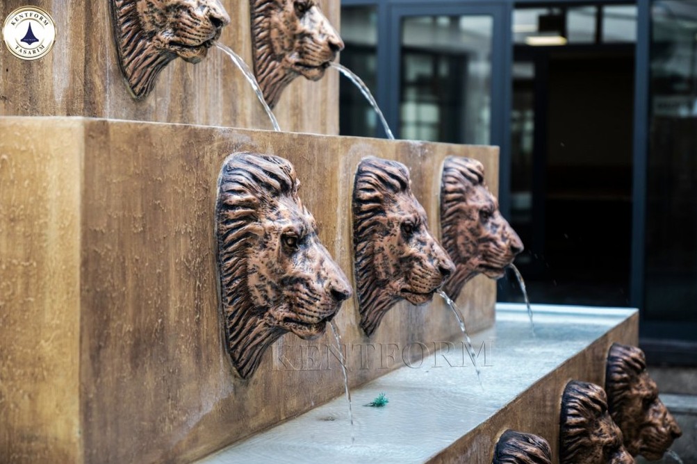 Projede kullanılan aslan başı figürleri, güç, otorite ve koruyuculuk sembolü olarak tasarlanmış olup, detaylı rölyef modelleme tekniği ile üretilmiştir.