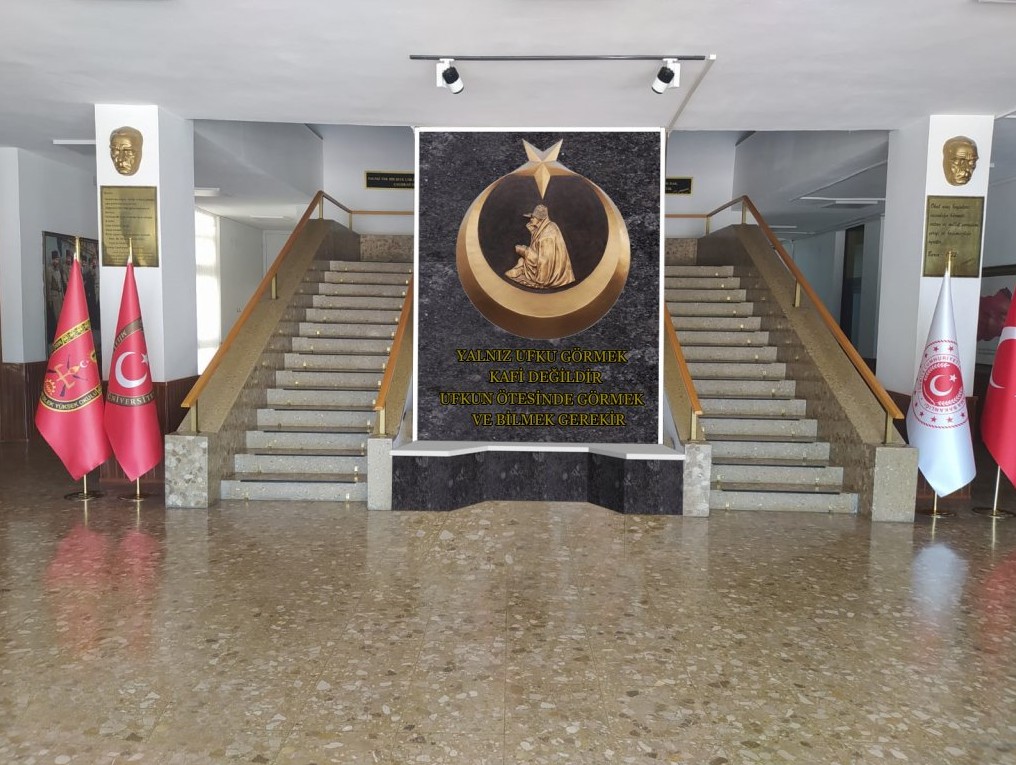 240×200 cm ölçülerindeki ay-yıldız formu, mekânda güçlü bir odak noktası oluştururken; 90×110 cm boyutundaki Atatürk rölyefi detaylı işçiliği ile ön plana çıkar. İç mekân uygulamalarına uygun olarak tasarlanan bu eser, bulunduğu alana tarihi kimlik ve prestij kazandıran dekoratif-anıtsal bir çalışma niteliğindedir.