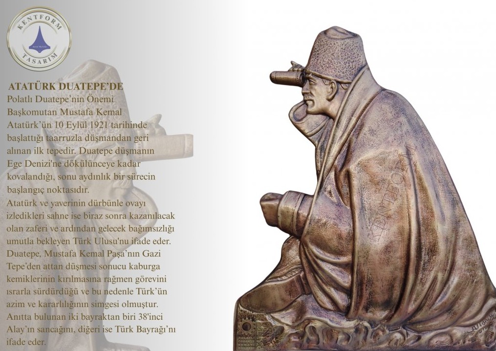 Milli mücadelenin simgesel noktalarından biri olan Duatepe ruhunu yansıtan bu özel çalışma, Atatürk figürünü ay-yıldız formu ile bütünleştirerek güçlü bir kompozisyon ortaya koymaktadır. Rölyef tekniği ile hazırlanan eser, hem tarihsel derinliği hem de estetik bütünlüğü ile dikkat çeker.