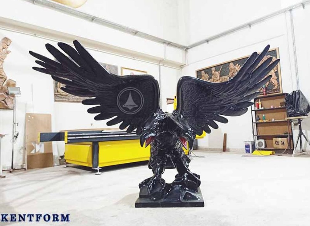 Detaylı modelleme çalışması ile kartalın tüy yapısı, kas formu ve duruşu titizlikle işlenmiş, figüre güçlü ve anıtsal bir karakter kazandırılmıştır. Simetrik yapısı sayesinde bulunduğu alanda dengeli ve dikkat çekici bir odak noktası oluşturmaktadır.