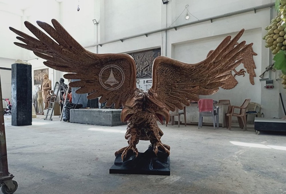 Tarihi ve kültürel anlamda güç, hâkimiyet ve koruyuculuğun simgesi olan çift başlı kartal figürü, bu anıt heykel çalışmasında etkileyici ve ihtişamlı bir kompozisyonla hayat bulmuştur.
