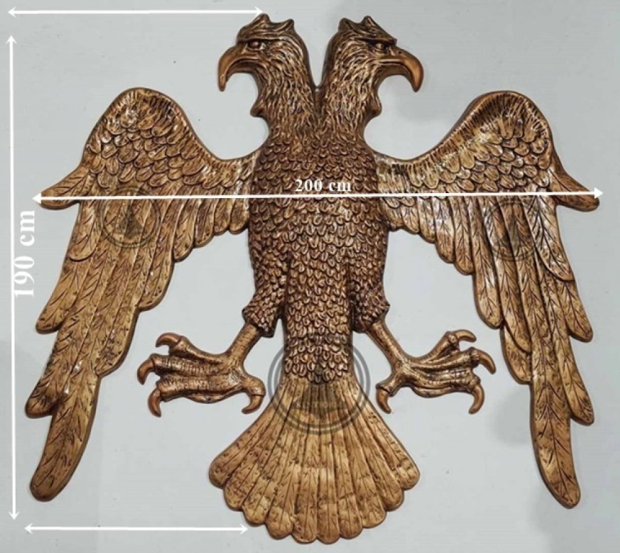 Türk-İslam sanatının en güçlü sembollerinden biri olan çift başlı kartal figürü, bu özel rölyef çalışmasında anıtsal bir form ve detaylı işçilik ile yeniden yorumlanmıştır. Gücü, hâkimiyeti ve doğu-batı dengesini temsil eden çift başlı kartal; tarihsel kökleri modern üretim teknikleriyle buluşturan etkileyici bir sanat eserine dönüşmüştür.