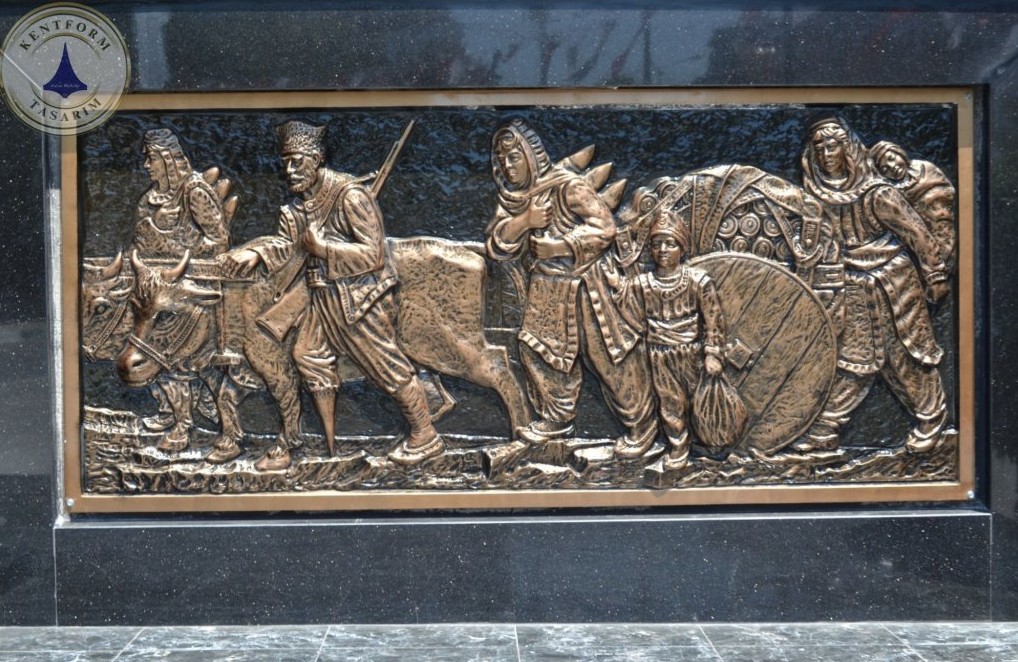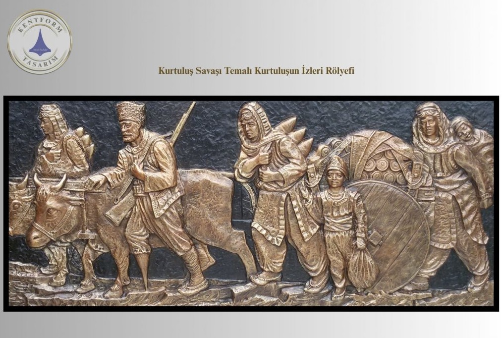 300×135 cm ölçülerinde tasarlanan bu rölyef, geniş yüzey kullanımı sayesinde özellikle meydan, anıt kaideleri ve kamusal alanlarda güçlü bir görsel etki oluşturur.