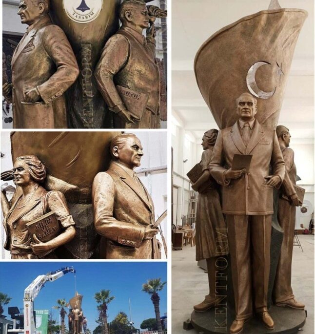 SİVİL MODEL ATATÜRK HEYKELİ ÇALIŞMASI Atatürk Heykeli Tasarım Bilgisi; Atatürk’ün sivil kıyafetli dinamik ve lider duruşuyla ileriye bakar şekilde sol eli döş hizasında,sağ eli cebinde,sağ ayağı hafif önde tasvir edilmiştir. Atatürk Heykeli çalışmasına başlanmadan önce Atatürk’ün yüz ifadesindeki detaylar,duruşu ve lider ruhu en ince detayına kadar etüt edilerek heykel atölyemizde…